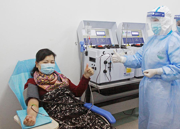 2月18日,武漢市金銀潭醫(yī)院院長張定宇的夫人程琳來到金銀潭醫(yī)院,捐獻了400毫升血漿。程琳1月19日確診新冠肺炎后在武漢市第四醫(yī)院接受治療,于1月29日康復出院。 新華社發(fā)(武漢市金銀潭醫(yī)院供圖)