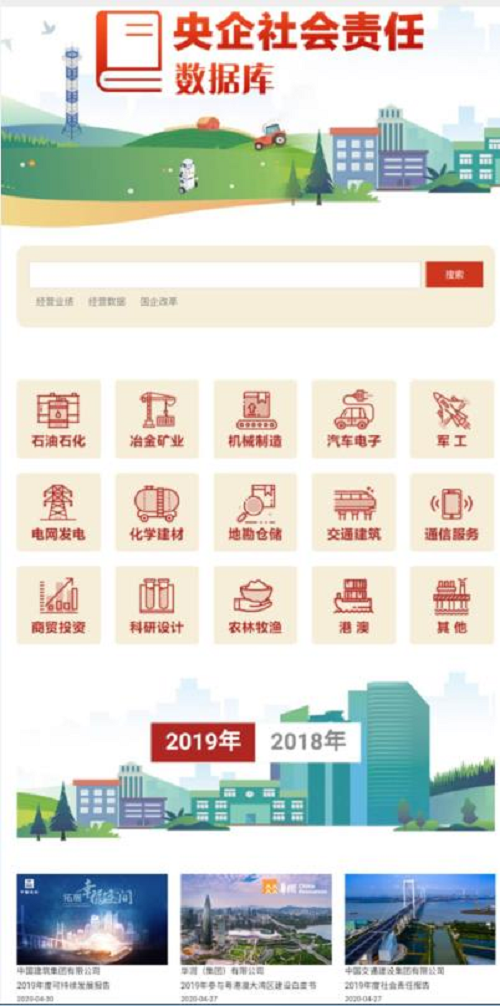 “兩會”召開前夕,國務(wù)院國資委網(wǎng)站推出《央企社會責(zé)任數(shù)據(jù)庫》,從年度、行業(yè)兩個維度全景展示各中央企業(yè)近年來對外公布的社會責(zé)任報告,經(jīng)營數(shù)據(jù)、改革發(fā)展、科技創(chuàng)新、精準(zhǔn)扶貧、一帶一路、綠色發(fā)展……一項項“硬核數(shù)據(jù)”向社會民眾及利益相關(guān)方客觀披露;特色案例、媒體聚焦板塊,則以圖文并茂的方式,多角度立體展示責(zé)任央企的生動實踐。