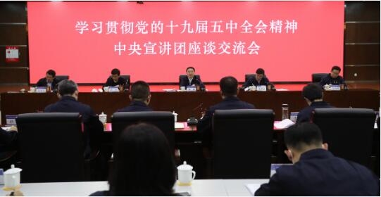 郝鵬對黨的十九屆五中全會精神進行了全面宣講。他表示,黨的十九屆五中全會是在全面建成小康社會勝利在望、全面建設社會主義現(xiàn)代化國家新征程即將開啟的重要歷史時刻召開的一次十分重要的會議。習近平總書記在全會上的重要講話,科學回答了一系列方向性、根本性、戰(zhàn)略性重大問題,為推動高質(zhì)量發(fā)展、構建新發(fā)展格局,奪取全面建設社會主義現(xiàn)代化國家新勝利提供了科學指南和基本遵循。全會取得的重要成果、作出的重大部署,為我國繼續(xù)抓住用好重要戰(zhàn)略機遇期,戰(zhàn)勝前進道路上各種風險挑戰(zhàn),奮力書寫新發(fā)展奇跡,推進中華民族偉大復興歷史進程,具有重大而深遠的意義。