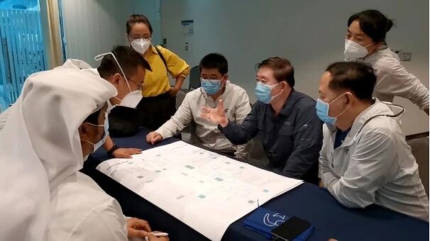 科研人員在阿聯(lián)酋與外方人員交流三期臨床試驗