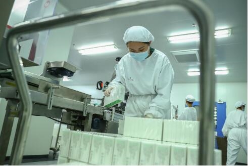 12月25日拍攝的國(guó)藥集團(tuán)中國(guó)生物北京生物制品研究所的新冠病毒滅活疫苗分包裝車間正在包裝的產(chǎn)品。