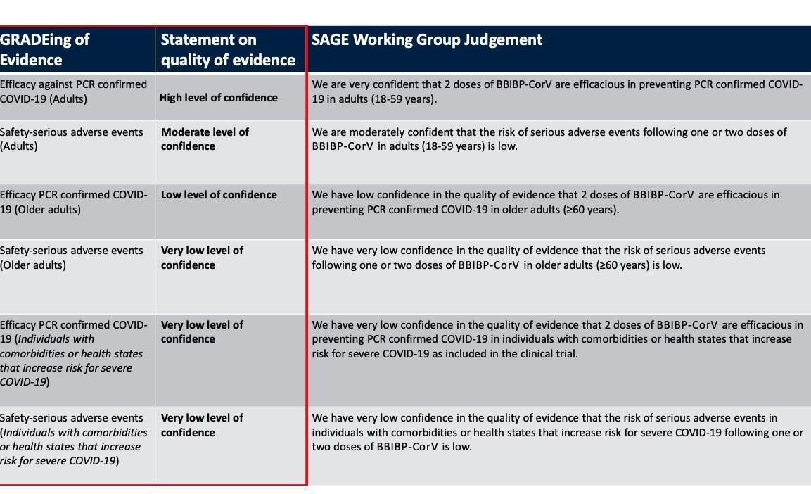 世衛(wèi)組織免疫戰(zhàn)略咨詢專家組對國藥疫苗的評估報告截圖