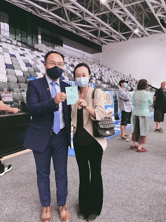 接種現(xiàn)場(chǎng)秩序井然,在毛中國(guó)同胞們嚴(yán)格遵守防疫規(guī)定,全程佩戴口罩,保持社交距離,在醫(yī)務(wù)人員和領(lǐng)保志愿者的引導(dǎo)下,經(jīng)過測(cè)量體溫、核對(duì)信息、健康詢問、了解注意事項(xiàng)等流程后依次接種,隨后進(jìn)行半小時(shí)的留觀。在拿到接種證書后,眾人紛紛在“春苗行動(dòng)”條幅前合影留念,感謝祖國(guó)對(duì)海外游子的關(guān)愛,為中國(guó)政府的“春苗行動(dòng)”點(diǎn)贊。