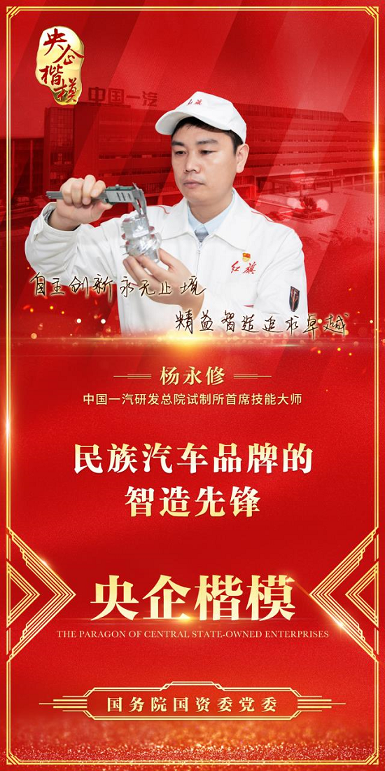楊永修,1987年出生,中國一汽研發(fā)總院試制所首席技能大師,主要從事汽車核心精密零部件的數(shù)控加工工作。他潛心精研技術,用十年時間從一名技工成長為集“全國技術能手”“全國五一勞動獎章”“中國青年五四獎章”等諸多殊榮于一身的大國工匠。作為勞模創(chuàng)新工作室?guī)ь^人,他獨創(chuàng)的“三步操作調試法”提升效率70%以上,累計攻克超硬材料加工等130多項技術難題,發(fā)表技術專利18項,節(jié)約創(chuàng)造價值千萬余元。2020年7月23日習近平總書記視察一汽,楊永修作為中國一汽新時代青年產業(yè)工匠代表現(xiàn)場聆聽重要講話,他時刻牢記囑托,敢于創(chuàng)新、勇于拼搏,助力中國民族汽車工業(yè)轉型發(fā)展。
