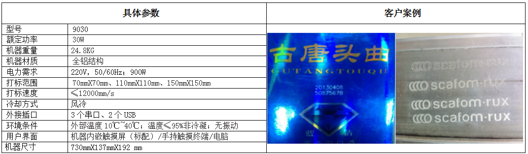 麥修拓軟件9030二氧化碳激光噴碼機(jī) 麥修拓二氧化碳激光噴碼機(jī)采用了美國(guó)原裝進(jìn)口激光器,先進(jìn)的偏振鏡系統(tǒng),確保了優(yōu)異的噴碼質(zhì)量和高速度輸出。整個(gè)激光系統(tǒng)集成了觸摸界面、感應(yīng)電眼和升降托架。結(jié)構(gòu)設(shè)計(jì)精巧和緊湊,因此可在狹小的空間方便安裝。產(chǎn)品適合中小企業(yè),產(chǎn)品線相對(duì)較慢的客戶(hù)。產(chǎn)品主要用于日化、食品、飲料、醫(yī)藥等中低速?lài)姶a。9030二氧化碳激光噴碼機(jī)特點(diǎn)*高質(zhì)量打標(biāo)效果 *體積小巧,安裝靈活 *紅光定位,功能強(qiáng),無(wú)需維護(hù)的CO2激光標(biāo)識(shí)系統(tǒng)*采用直觀軟件,操作簡(jiǎn)易快速,易于用戶(hù)使用 *嵌入式WINDOWS CE系統(tǒng),安全、穩(wěn)定、快速