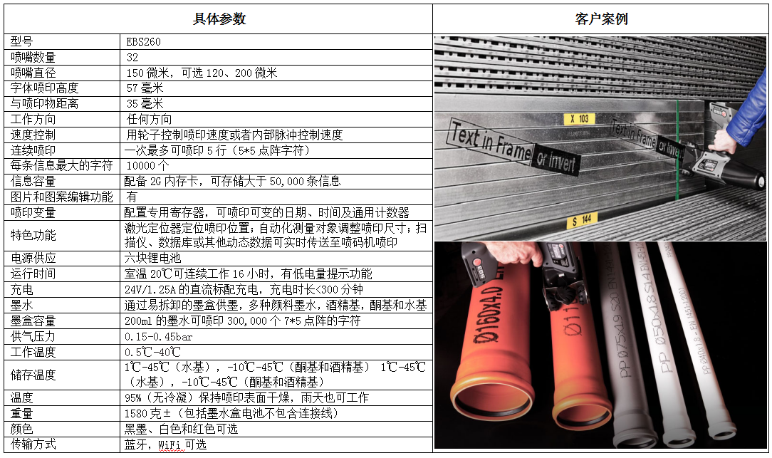EBS 260 憑借其專利噴印技術取代了陳舊的手工標識(如模具機、印花機、噴刷漆等,請工人操作時費工時又效率低)