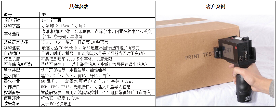 HP惠普手持噴碼機特點