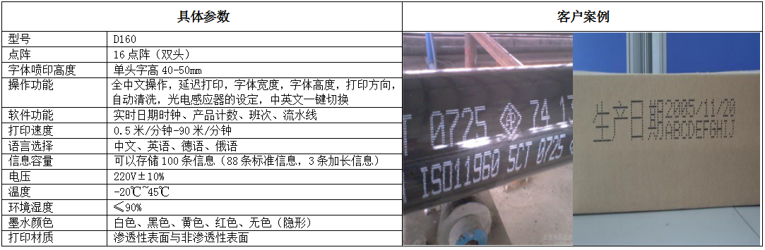 D160大字符噴碼機系統(tǒng) 外觀簡潔大方,加入了提手設(shè)計,更方便移動。密封式寶石噴頭堅固耐用,多種字型、字寬字高均可設(shè)置,并有延遲打印,自動清洗等功能。主要用于石膏板、紙卷、編織袋等初級包裝上噴碼,也可用于外包裝上噴印零售所需的產(chǎn)品圖片、條碼、商標(biāo)和貨運信息。D160大字符噴碼機廣泛應(yīng)用于食品飲料、化工建材、醫(yī)藥、鋼鐵、系統(tǒng)集成、產(chǎn)品定制、配線生產(chǎn)等行業(yè)。